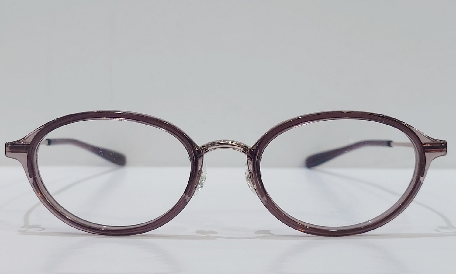 - 華やかな色合いのプラスチックリムと、凛とした表情のメタルテンプルが美しく調和したレディースモデル。