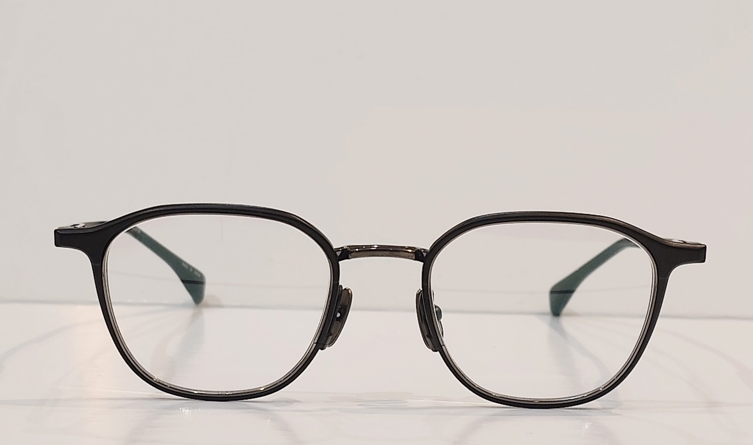 現代建築を彷彿とさせる独創的なチタンモデル。独自の「Uスプリング」構造をテンプルに採用し、溶接なしの一体成型で高い堅牢性とフィット感を実現しました。多面カットによる立体的な造形と絶妙な配色が、上質で普遍的な存在感を放ちます。