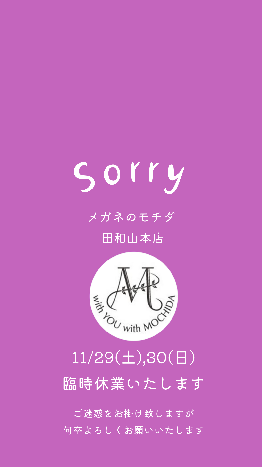 2025.11.28 田和山本店臨時休業のお知らせ 田和山本店 臨時休業のお知らせ店舗外にて催事開催の為11月29(土),30(日)お休みさせていただきますご迷惑をおかけいたしますが何卒よろしくお願いいたします Tweet Share Hatena Pocket RSS feedly Pin it 田和山店営業時間の変更のお知らせ 補聴器相談会 イオン松江店/12月13日・