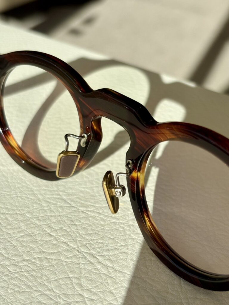 インポートフレームは穴当てが広く低いため、多くの割合で鼻盛り加工という作業を行ってから眼鏡をお渡しします。