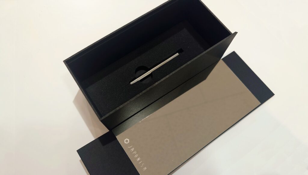 セットになるオリジナル専用ボックスは、蓋を開ければそのままミラースタンドとしても使える特別仕様。